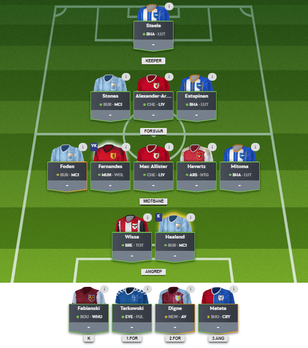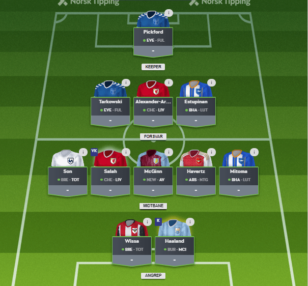 På midtbanen har de gjort Rashford og Richarlison til spiss. Salah koster 12 i NT, mot 12,5 i FPL, og har veldig mange skudd, selv om mange traff utenfor mål i fjor. De Bruyne koster også 0,5 mindre hos NT. Noen som har blitt dyrere: Saka (8,5 -> 10), B.Fernandes (8,5 -> 9,5), Ødegård (8,5 -> 9,0), Foden (7,5 -> 8,5), Martinelli (8,0 -> 8,5), Maddison (7,5 -> 8,0) osv. Kulusevski til 6,0 kan være et røverkjøp hos NT hvis han får spille.